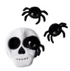 Spin a web of fun for your dog with the Fringe Studios PetShop Halloween Skull with Spiders Burrow Plush Squeaky Dog Toy Set! Let your dog enjoy some Halloween mischief with the Fringe Studios PetShop Halloween Skull with Spiders Burrow! This hide-and-seek plush dog toy set features a Skull Burrow with two eye openings to hide the 3 spiders inside for your dog to find. Designed to help keep your dog entertained and make playtime more mentally stimulating and satisfying for them, this burrow dog toy offers hours of spook-tacular fun for your pet. Your dog can also use the 3 included spiders separately for other playtime activities! Each spider includes one squeaker inside for extra engaging entertainment for your dog.
